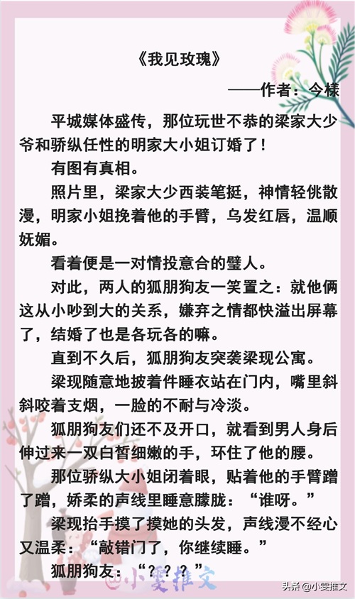 第五本是豪门世家青梅竹马小甜文,讲的是互怼冤家先婚后爱的故事