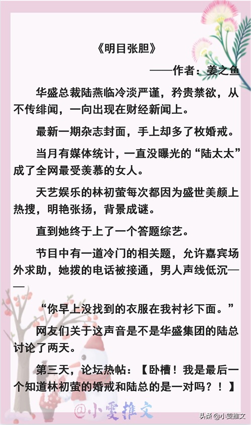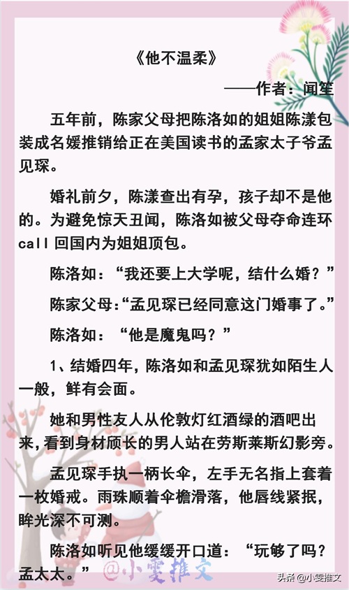 5本高评分高收藏婚恋小甜文推荐!《他不温柔》《明目张胆》