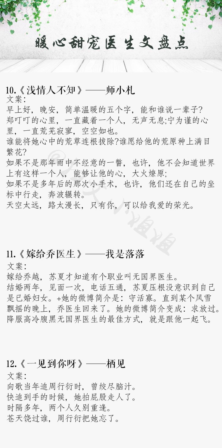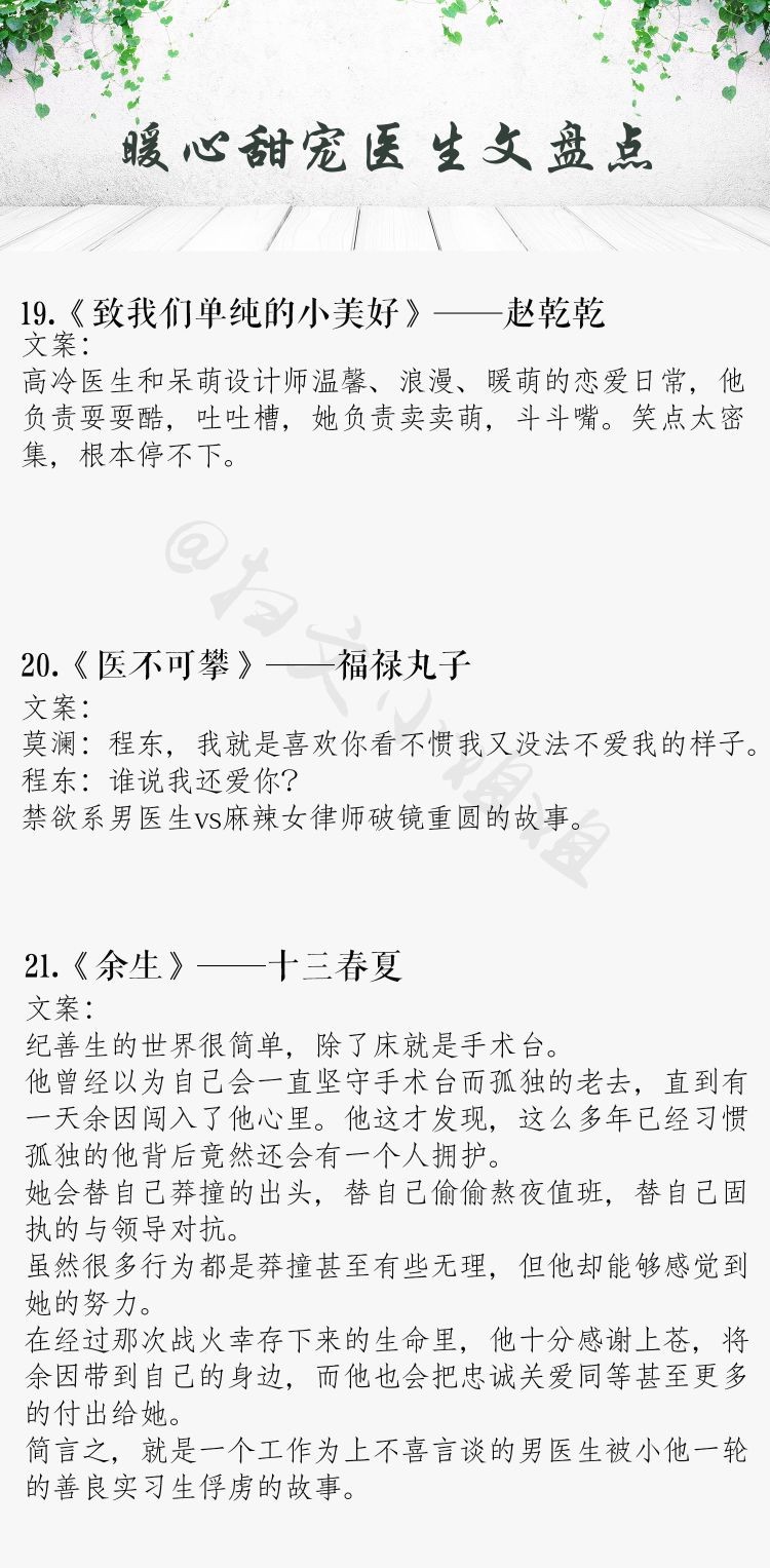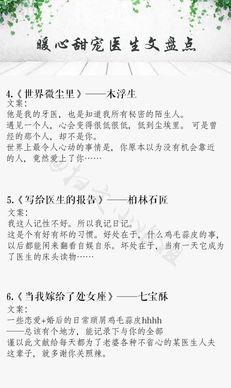 今天推荐一批高甜医生男主系列文,恪尽职守,医者仁心,禁欲又撩人。外表高冷儒雅的医生男主,真的是苏炸了!