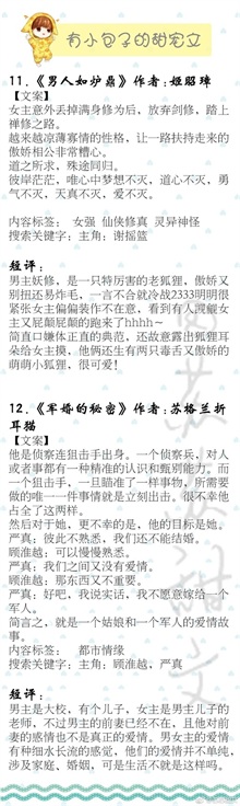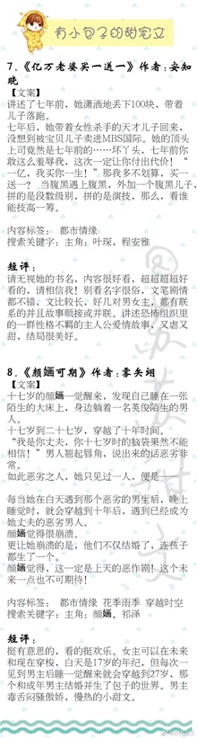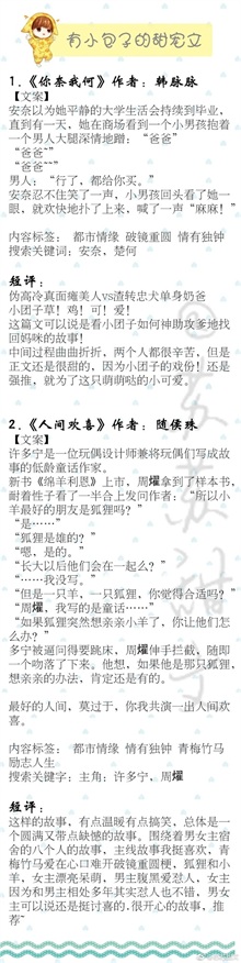 - 超轻推文:7本。婚恋文,有包子甜文。