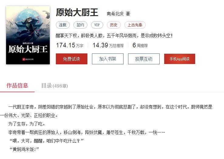 这本书作者烂尾了。好像是自己写崩了。其实看着感觉还行,刚穿越完宋朝的李奇又穿越到原始社会了。然后去给各大种族改善伙食了。不过写了170多万字,作者就崩了。有兴趣的可以看看。有点疯狂原始人的动画既视感。