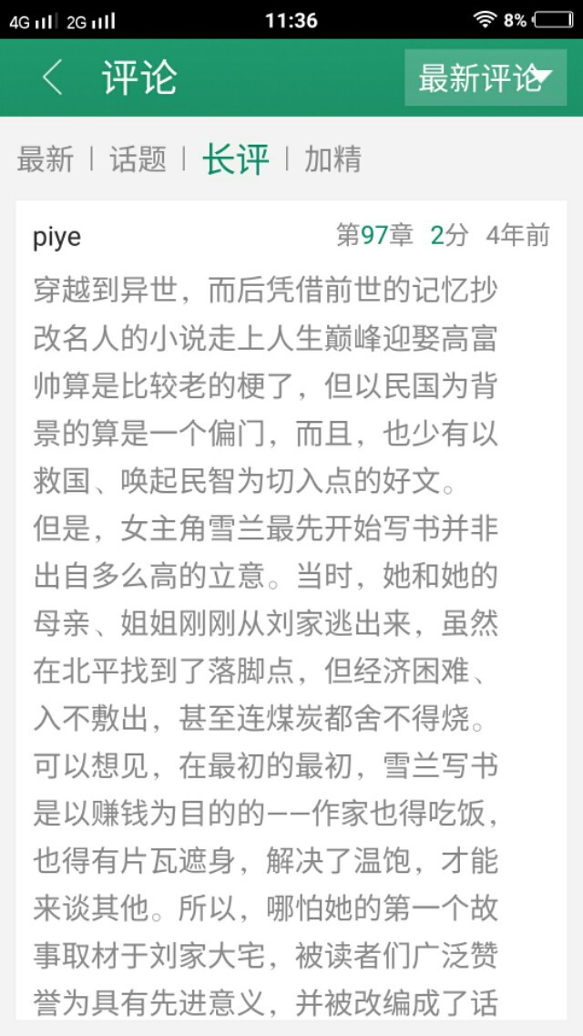 写的文里面有抄的 (作者简介有提醒雷的慎入)也有作者写的小故事我还挺想看全篇的 毕竟故事梗概都写的很好 《妻妾成群》写大家族中被逼疯的小妾《冰冻千年》写出了黄莺和玫瑰两个ji女悲惨的人生《醉拳》里面的被休的张翠婉等等 每个小故事都让我印象深刻 而且作者大大在文里给自己写的书评都特别好 真的很会从侧面入手把民国时那种文学氛围描绘出来