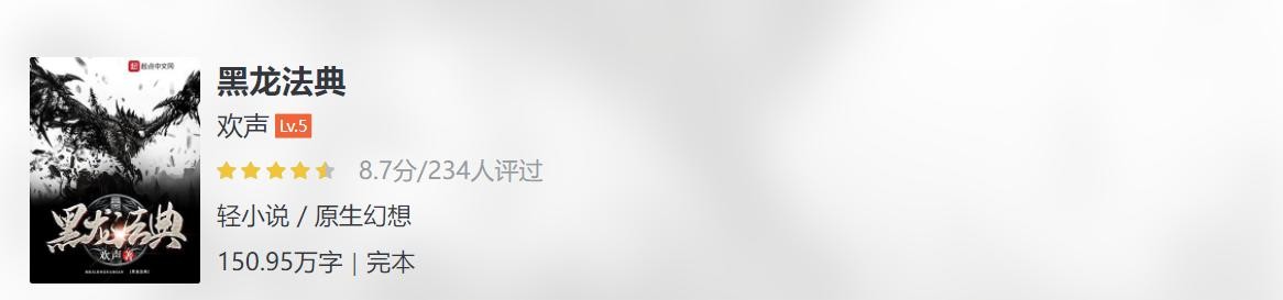 评价:当年的五色龙征集文其中之一,无限流,也还算可以,主角在黑龙法典中出现过,老实讲当时写五色龙的还挺多的,但大都收益不理想……