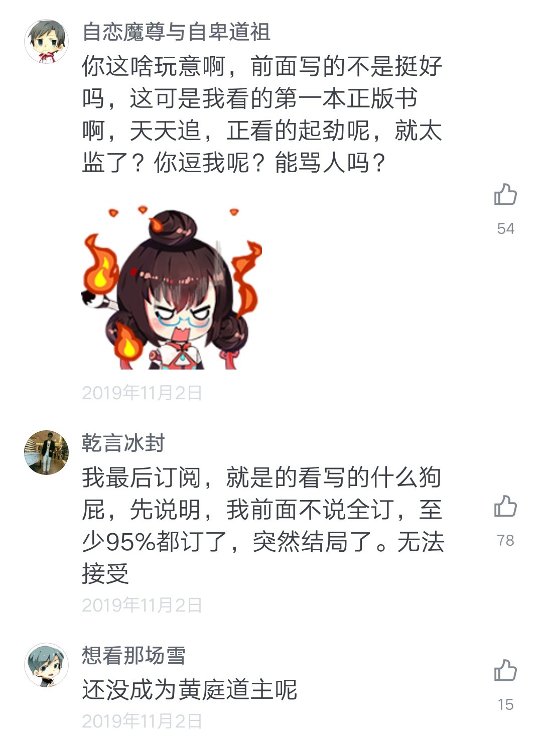 书评:这本书记忆最深的就是【太监】两个字。原本好好的完结应该是撒花,却被读者撒,真的是把我给笑死了。