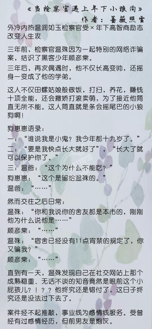 3.《当检察官遇上年下小狼狗》 作者:蔷薇照雪