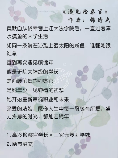 6篇现言「男主是检察官」高口碑言情小说推荐合集|小说打捞馆