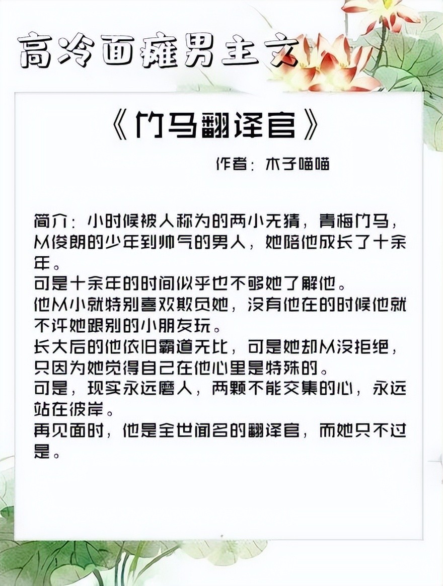 五本十分好看的小说:高冷冰山的男主,在她面前却是个傲娇粘人精