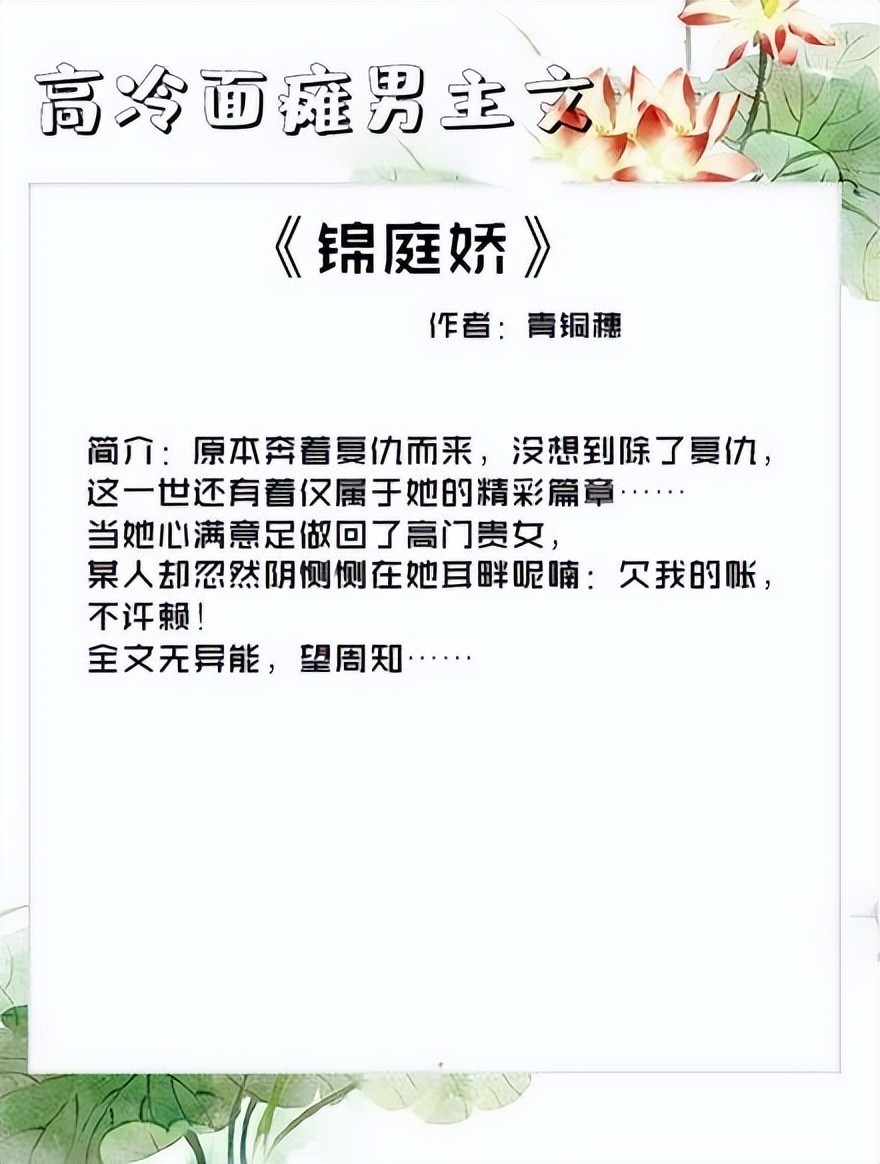 Holle!小编我来啦,今天给大家带来的是五本十分好看的小说:高冷冰山的男主,在她面前却是个傲娇粘人精。