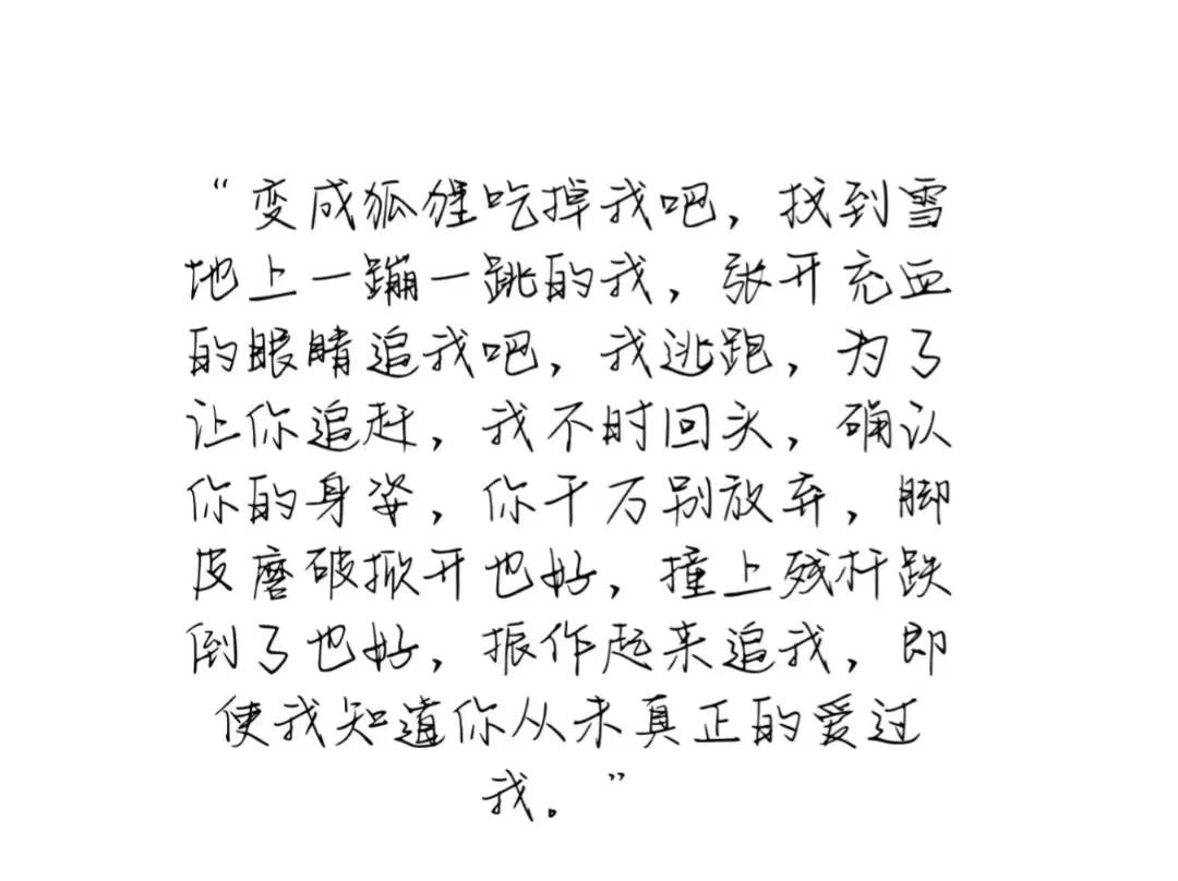 兔,是完全为叶梓存在的。他曾经朗诵的那首诗,他说“因一个名字的力量,我重获新生,我生而为认识你,喊出你的名字”,他就是这样,他的世界里只有叶梓。他的爱是最为纯粹、理想的。