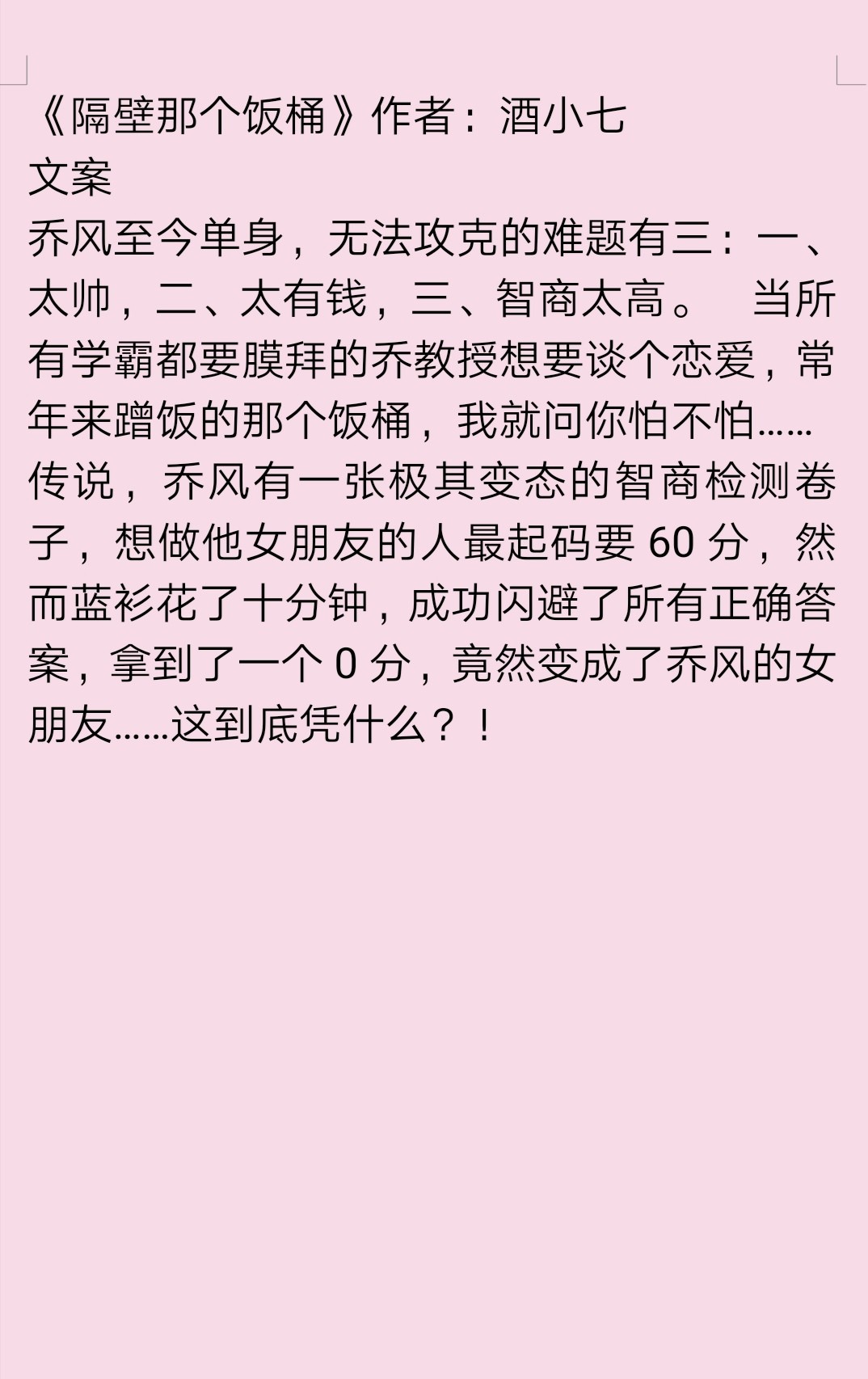 强推酒小七好看小说合集,搞笑甜宠,轻松欢快!
