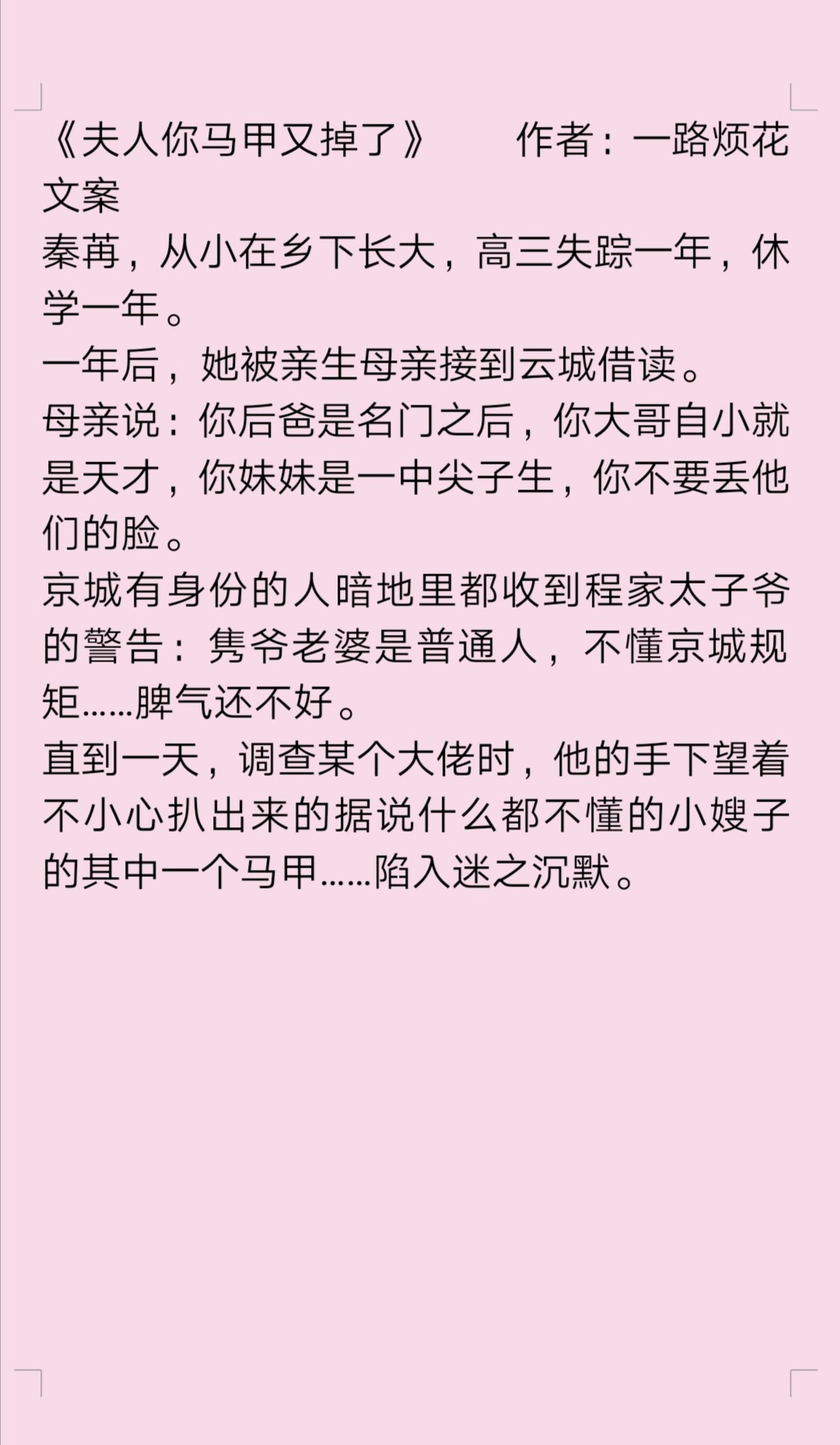 《夫人你马甲又掉了》~~~~~