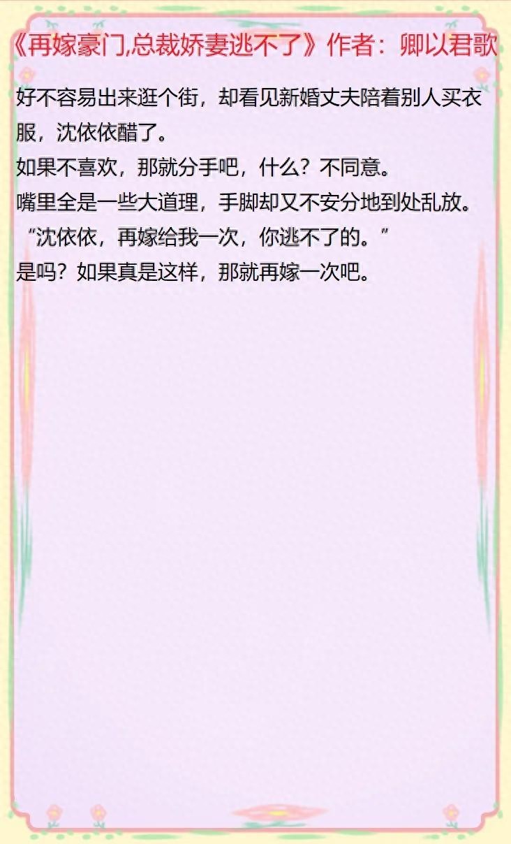 ☞《再嫁豪门,总裁娇妻逃不了》作者:卿以君歌