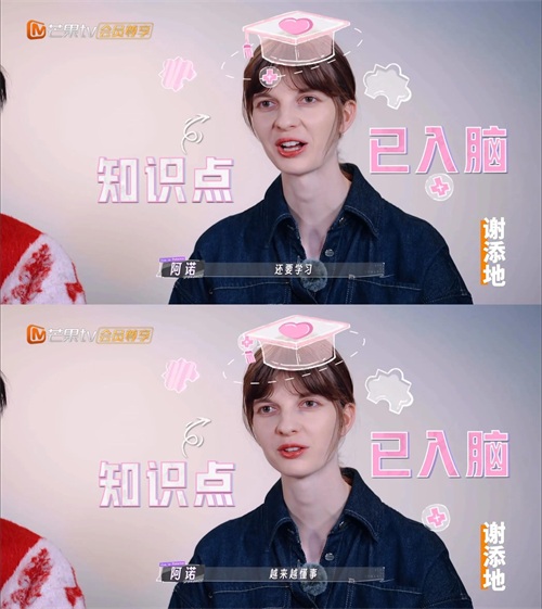 节目前采中有一个家乡话介绍伴侣的环节,阿诺因为长期在中国生活,法语已经不算熟练,个别词语一时想不起来如何用法语形容,只能光速切回中文,笑着说自己现在绝大部分是“说中文的脑”。