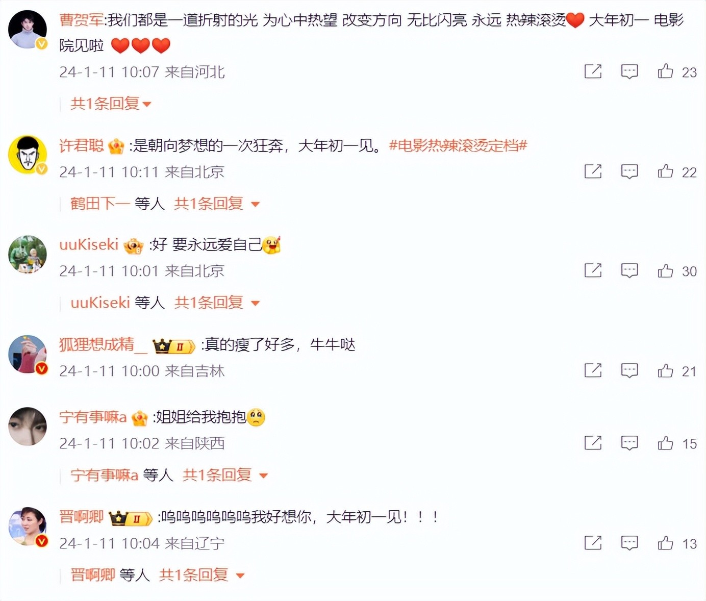 看到贾玲的发文,网友也都纷纷留言为贾玲打call:“好,要永远爱自己”“真的瘦了好多,牛牛哒”“姐姐给我抱抱”“呜呜呜好想你,大年初一见”。