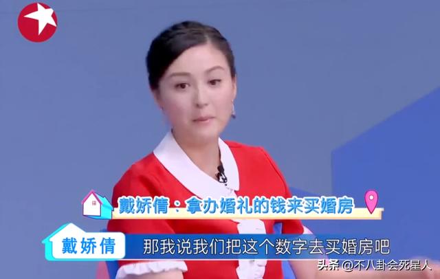 她只是在节目中提到过,夫妻俩没办婚礼、没有度蜜月,她让老公把办仪式的钱直接给她,她去买了房子。看得出来,戴娇倩是个务实派。