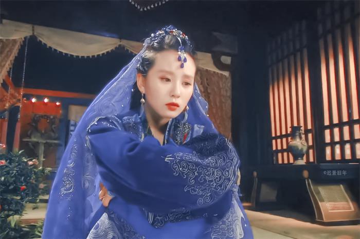 书里九爷给玉瑾送了一套蓝色的楼兰新娘嫁衣,可惜玉瑾穿了两次九爷都没看到。