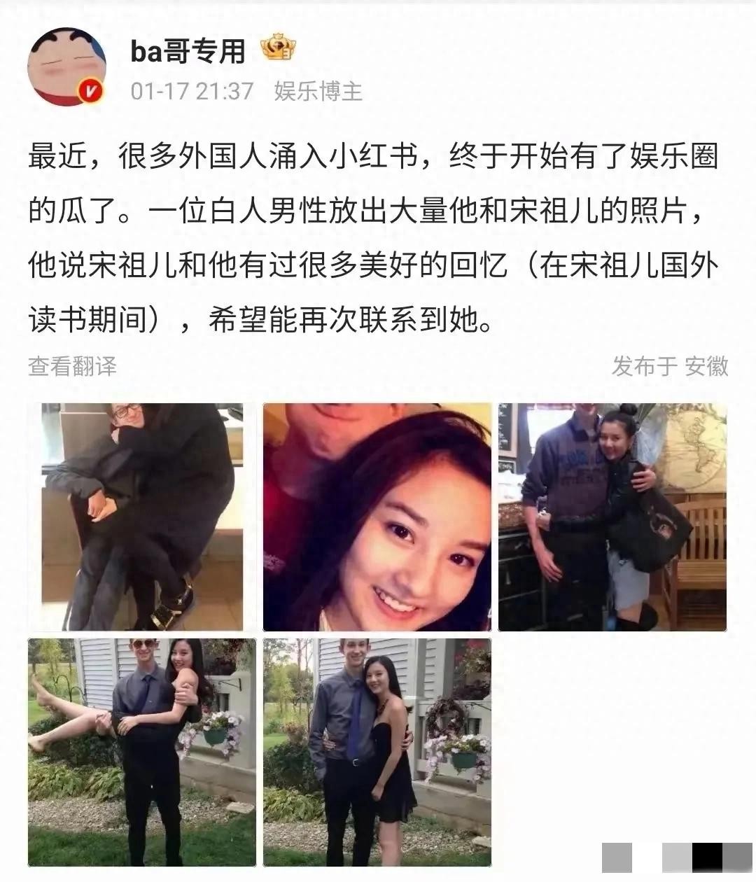 白人男生发帖寻找宋祖儿,亲密照曝光
