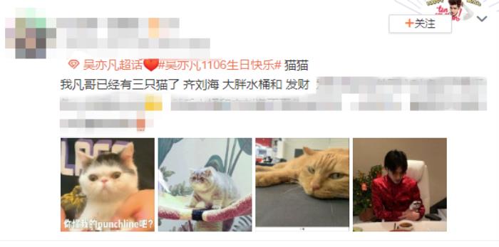 这名女生还在网上发问,如果你男朋友养了三只猫,而你非常非常怕猫,你男朋友只能把它放到宠物店,而你觉得对不起猫,也对不起男朋友,怎么办?接着网友根据吴亦凡粉丝透露的信息,得知吴亦凡恰巧养了三只猫。