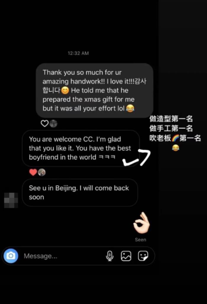 不仅如此,网友还扒出两人撞了不少首饰、甚至连行程都一样。这名女生还po出了疑似和吴亦凡造型师的聊天记录,对方也称自己将回北京。