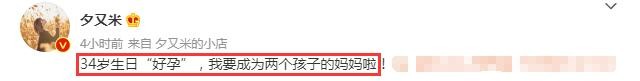 3月23日下午,网红时尚博主夕又米(本名徐粲金)在其个人社交平台官宣二胎喜讯,开心配文称“34岁生日‘好孕’,我要成为两个孩子的妈妈啦”!原来23日这天,恰逢夕又米的34岁生日,在特别的日子里,她亦是大方分享二胎喜讯,与前夫高晓松所育女儿Zoe升级当姐姐!