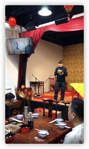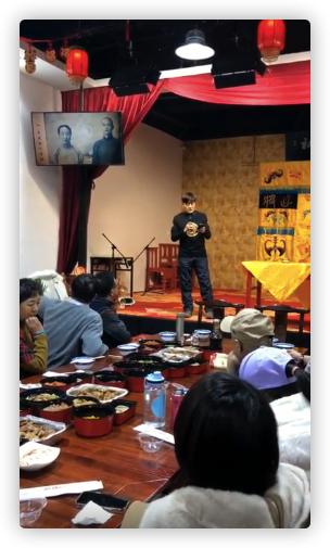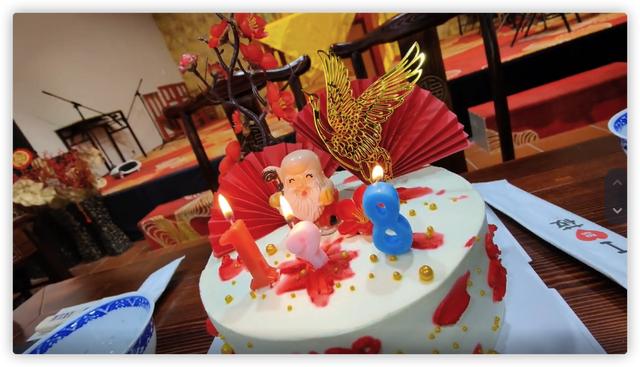 这次李志希特地从中国台湾返回呼和浩特过年,并为爷爷李永利庆祝138岁诞辰。现场的布置年味十足,正中间是一个大戏台子,底下摆满了木制的茶几与桌椅,上面放着一盘盘包好的大饺子。