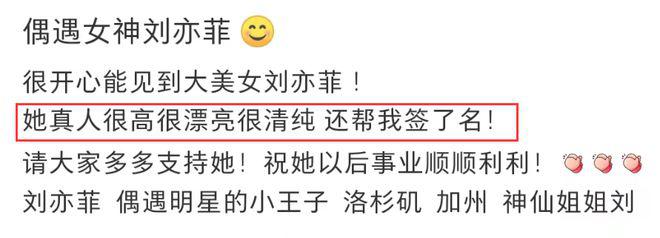 这次刘亦菲大方和粉丝合影签名,也打破了刘亦菲耍大牌的说法。此前有一位网友在巴黎偶遇刘亦菲买行李箱,对方称在巴黎的商场偶遇 " 神仙姐姐 ",原本想上去合影,却被刘亦菲拒绝了。随后这位网友发帖子吐槽刘亦菲 " 耍大牌 "" 冷脸 ",对其滤镜彻底破碎了!