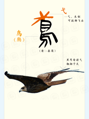 “羽”,指鸟羽双翼之形,表示意义鸟羽飞;