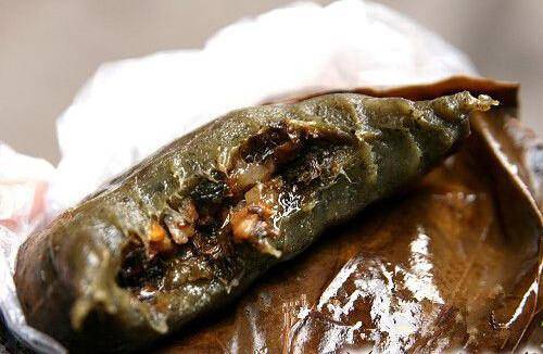 包装很民族,里头的肉馅好吃与否看运气。可以研究一下篓子和包叶颜色是不是很深,和肉馅的颜色是不是接近,如果接近,有可能会好吃一些。