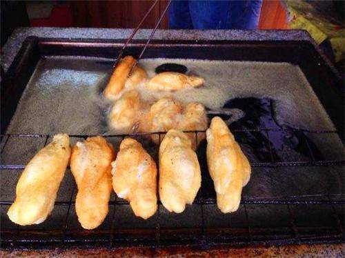 因为长得很像油条,有的就真的是拿油条滥竽充数的,当然,这个靠肉眼就可以区分出来,再说油条也很好吃…..外面撒上花生糖。这个要挑个头小些的,道理就和吃肉包子一样,皮儿太厚了,怎么都吃不到重点着急得一样。