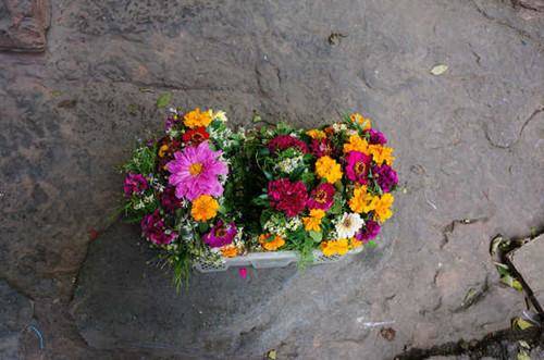 古城中心地带,就是有一路石头连过江去的地方,常有花环买,黄花红花绿松枝扎成的花环帽子,虽然不是凤凰独有,但在每个古镇看到,都有点意思,特别是从看风景的角度看来。