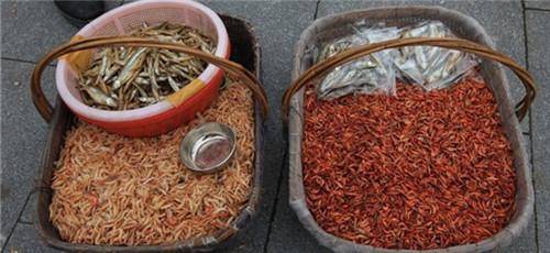 白天街头也有卖干虾米小鱼干的,可以买回家做菜用,用小盅子小碗一碗一碗的卖,挺有意思。