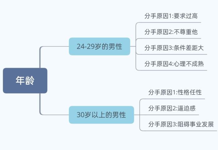 我把年龄分为了30岁以下和30岁以上,这部分的内容较多,大家可以看看这个思维导图,方便理解。