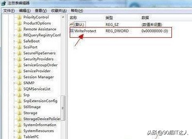 注意:这里部分用户反馈,以上位置找不到WriteProtect注册表项目,如果找不到,可以在以上空白位置新建 WriteProtect注册表项,数值设置为0即可。