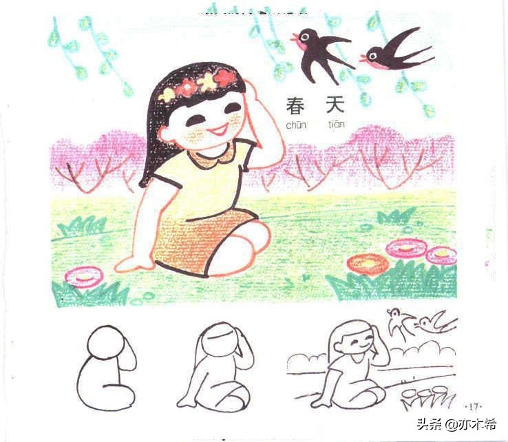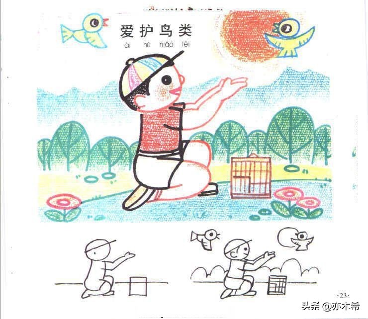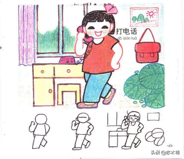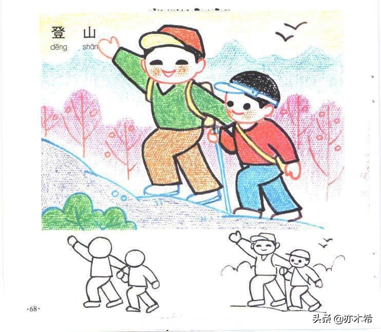 这些简笔画线条简单,颜色不复杂,可以用彩铅画,也可以用油画棒画,非常适合孩子学习。