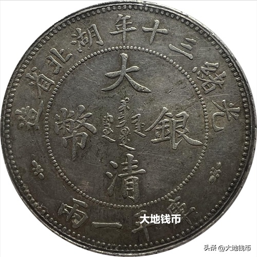 这枚湖北双龙一两是中国最早在币面上铭文“大清银币”的银币,也是流通币中,除了吉林“厂平一两”外唯一的“两”制币。