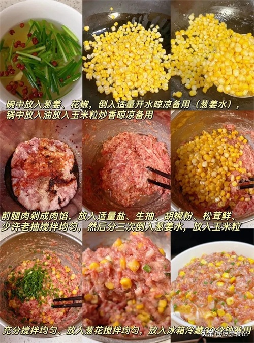 准备食材:猪肉末,虾仁,玉米,韭菜,葱姜,花椒。