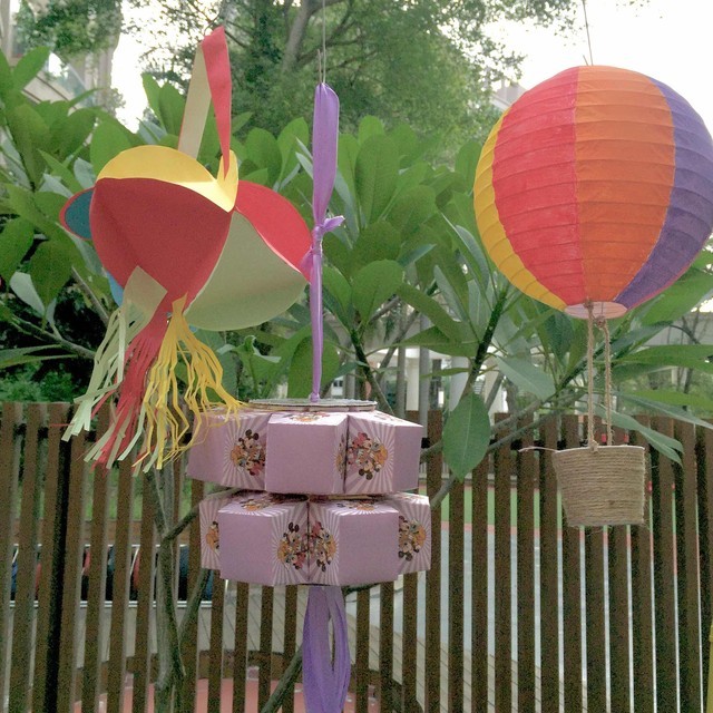 - 将彩色细线或丝带穿过孔洞,打成结,用来悬挂灯笼。
