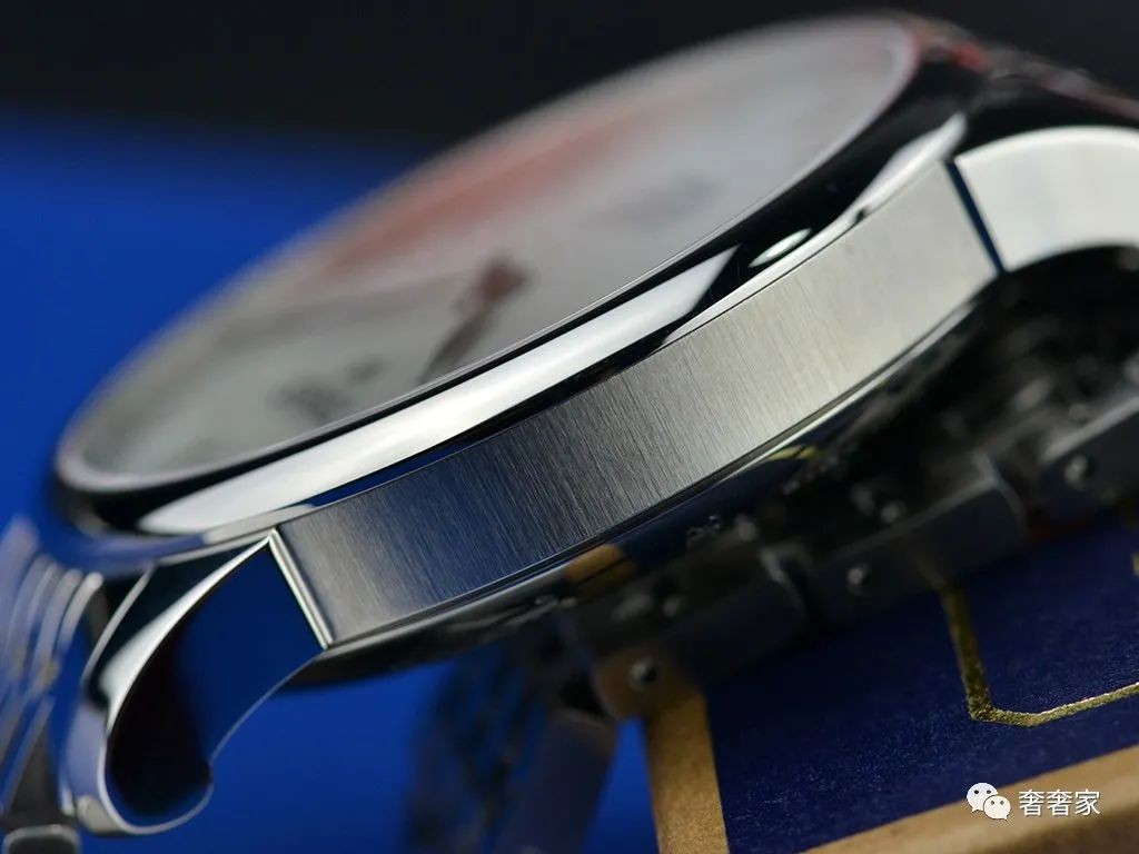 腕表由精钢材质打造而成,表径39.3毫米,表壳厚9.75毫米