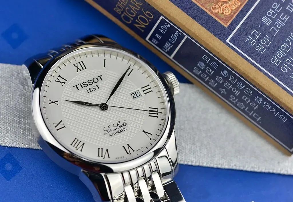 精钢表壳搭配白色表盘简约而优雅,天梭力洛克系列腕表展现品牌独特美感。