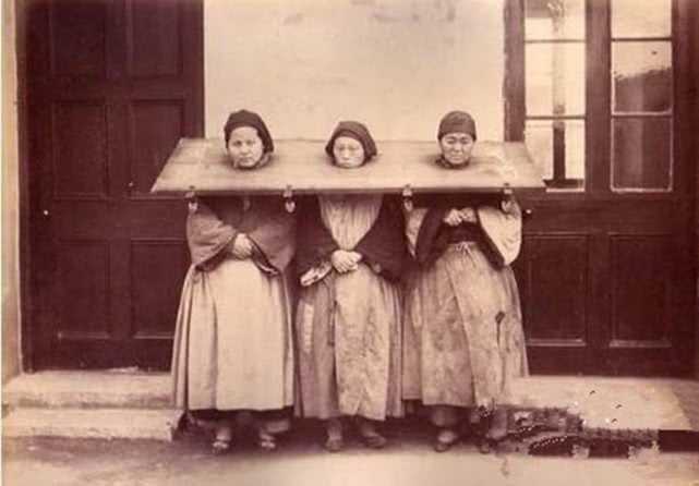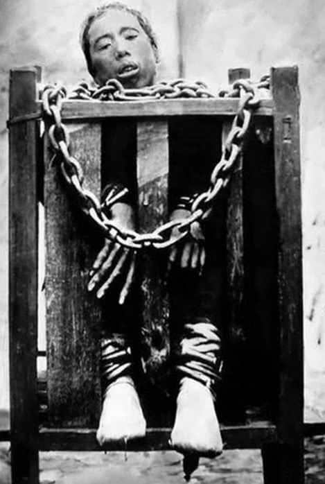 清末刑罚老照片:半空蹲马步,图4被强迫跪在铁链上,图5女犯人痛苦万分!