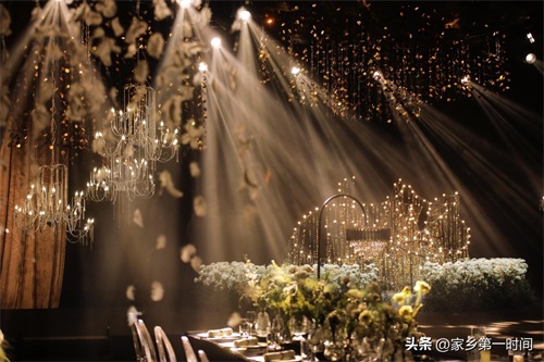 须臾璀璨,如梦如幻,正如我从复古鎏金的光晕中辗转而来,只为与你共赴不老。大宴会厅婚礼秀整体风格选用复古金色,丝绒质感的布幔搭配摩登的颜色,花艺装置点缀其中,串连成流动的线条,呈现着欧洲宫廷的磅礴优雅。水晶灯的光芒倾泻而下,与烛光交相辉映,镶嵌着复古金色亮片,瞬间唤醒温柔而又奢华的既视感。活动现场运用了声光结合的立体环绕特效,搭配高清LED屏营造虚实变幻的艺术效果,于震撼中开启一场浪漫唯美的爱情之旅。