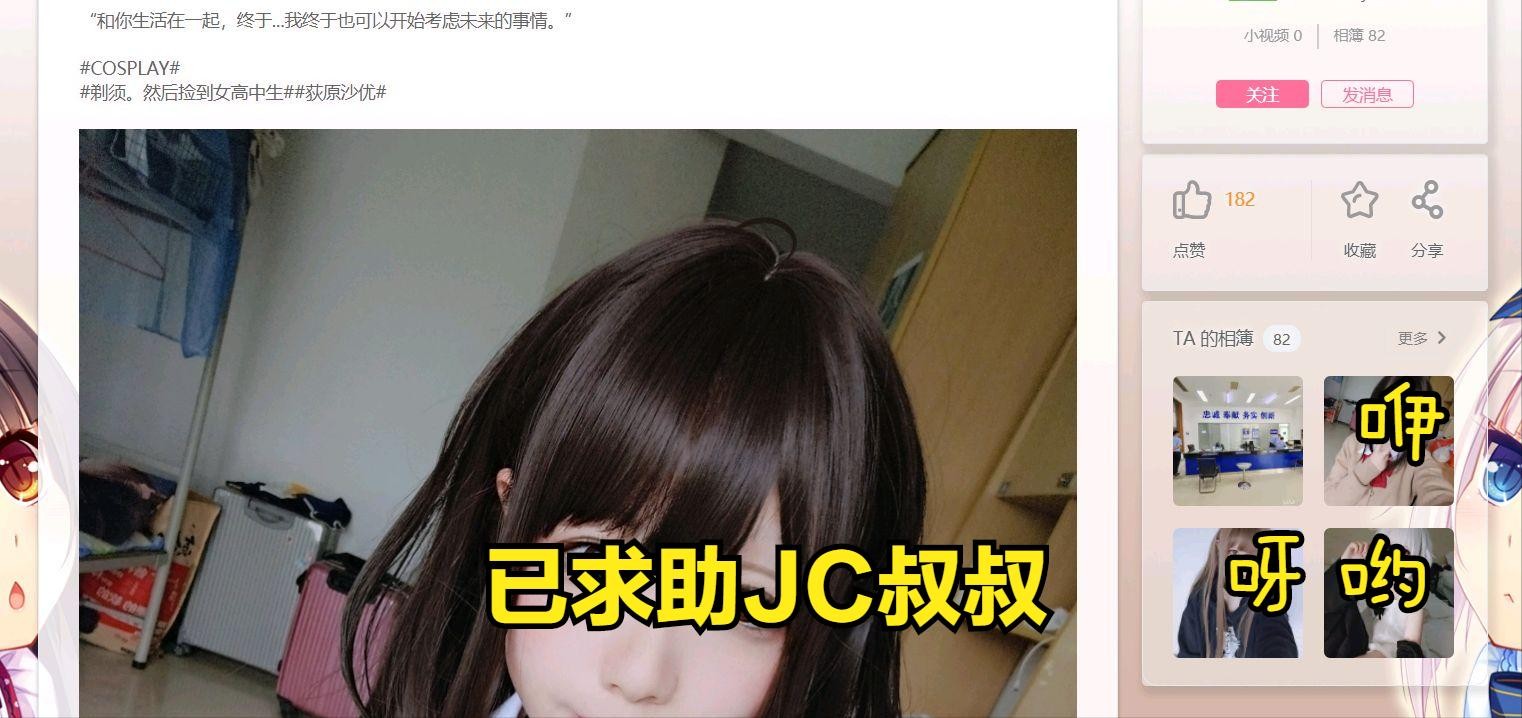从网上了解到的信息,cos沙优算是个“助燃剂”,颜值不错的小姐姐有个追求者,因私人恩怨在网上发了她的图片,引发了500+的转发,但随着事件发展,却从私人恩怨的调侃直接上升到了人品层面,不少人的评论都开始向“COS争议角色只怪其现实人品不好”,但这样的推论是否过了?连求助JC都被不少网友吐槽,怪不得小姐姐都觉得太委屈了,感情世界不好说。