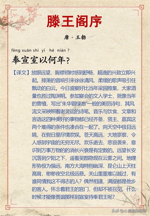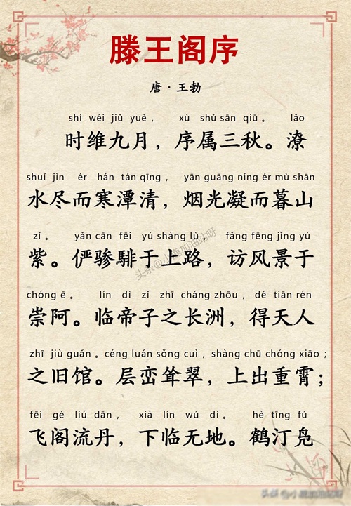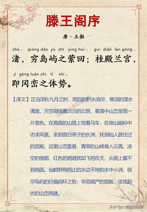 千古名篇 人生必读:王勃《滕王阁序》全文带拼音译文完整版
