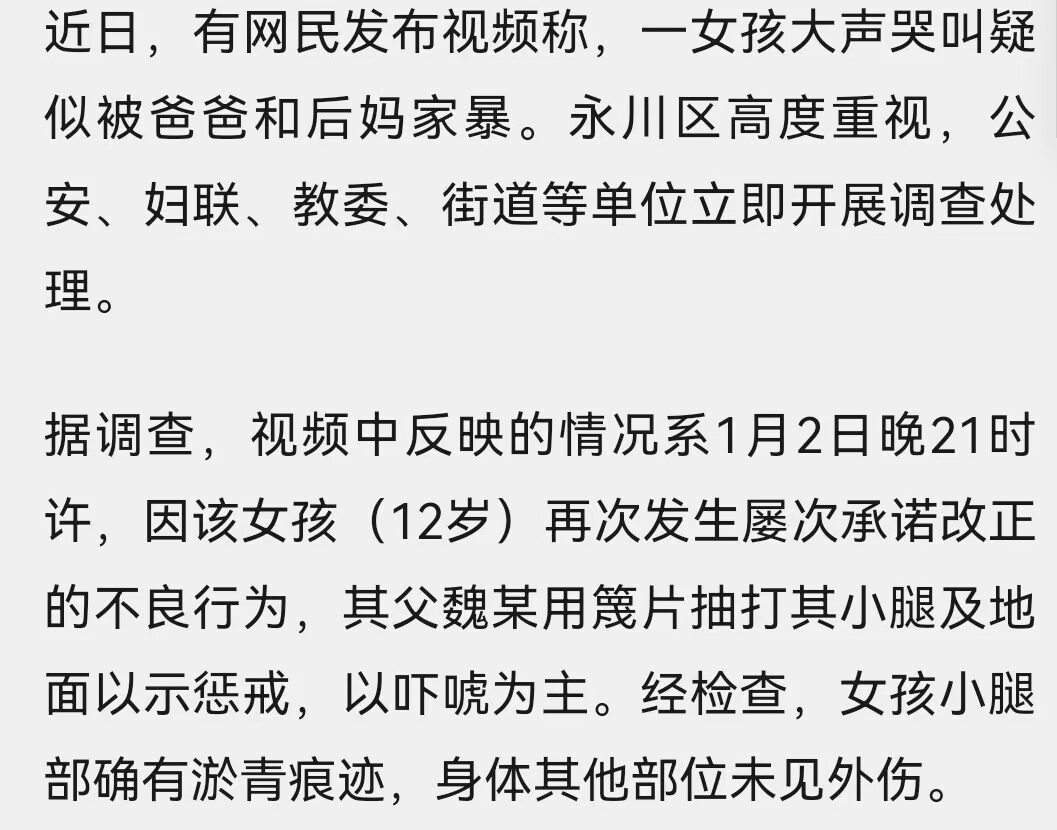 一父亲联合后妈毒打12岁亲生女儿,妇联回应:有淤青,但非家暴?