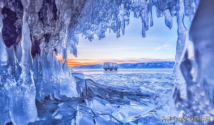 在俄罗斯贝加尔湖的22个岛中,奥利洪岛最大,长约71公里,宽处有15公里。它位于湖中部偏北,在湖水最深处附近。如果说贝加尔湖是西伯利亚的明珠,奥利洪岛就是这颗明珠的心脏,是盛产蓝冰的地方。 每年的冬季,因为温度、压力、深度等原因,贝加尔湖的冰面在挤压、碎裂、重新结冰的过程中,常常出现成堆的碎裂冰片。这些玻璃似的透明冰片沿着裂缝绵延,形成了低矮的冰墙,冰的裂缝将湖面分成一块块蓝色“薄荷糖”,大小不等、或疏或密的白色气泡从湖底涌上,被封冻在蓝冰之中,层层叠叠,像是有生命一般,却又凝固不动。