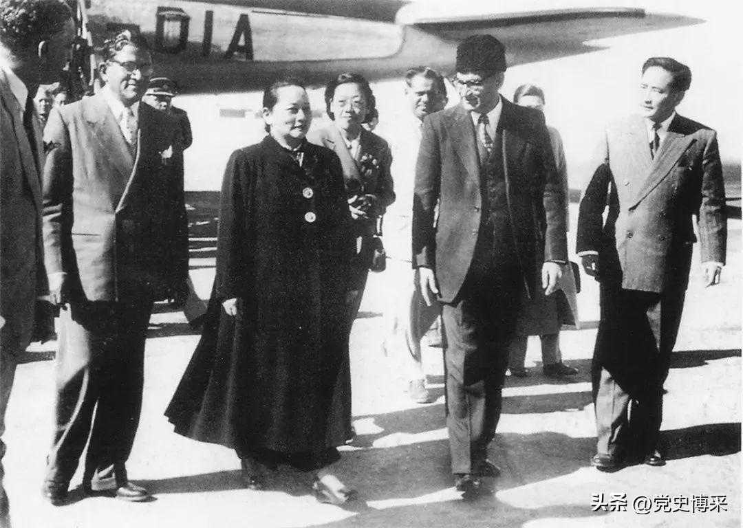 ◆1956年1月,宋庆龄抵达巴基斯坦首都卡拉奇,开始对巴基斯坦的访问。巴基斯坦总理默罕默德·阿里到机场迎接。右一为韩念龙。