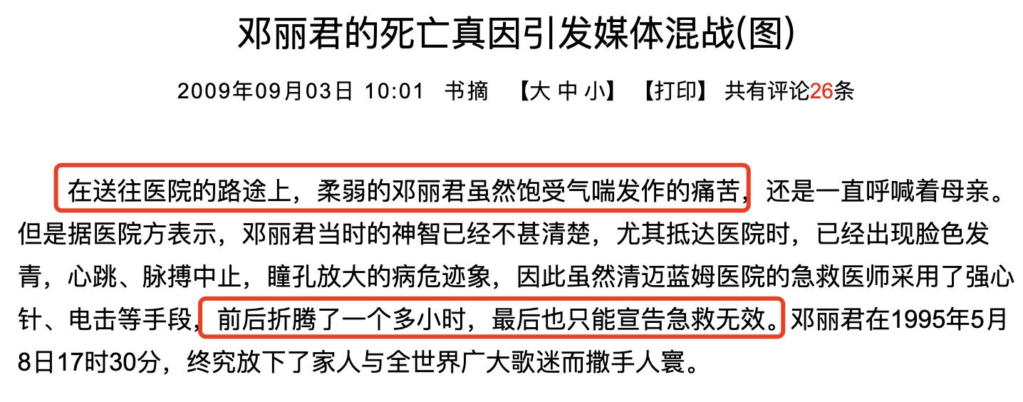 邓丽君被院方证实“错失有效救治时机”,以致抢救无效逝世,终年42岁。