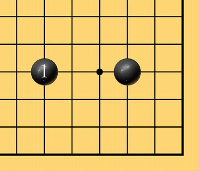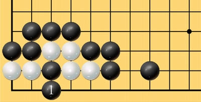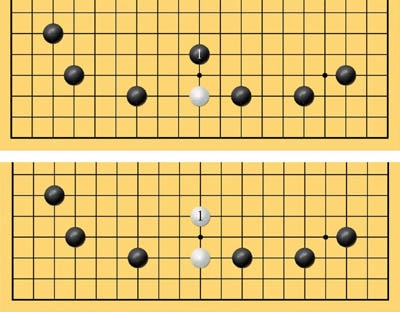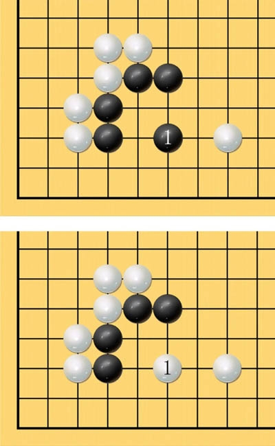 9.棋逢断处打。实用格言,指同一棋形,有两个二路上的断点时,对方断哪边,一定要打吃哪边,当然意味着舍弃另一边。