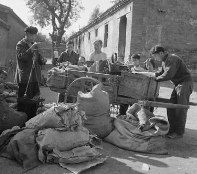 回收后,他把袋子的粉尘抖搂干净,再缝补好卖给别人装炭。