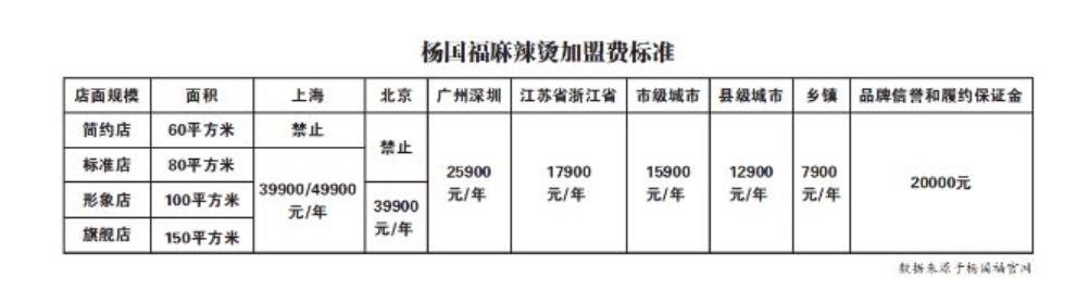 一位杨国福集团的负责人告诉记者,加盟费因一线、二线、三线城市以及县级乡镇来分等级,分别有49900、25900、21900、17900元。